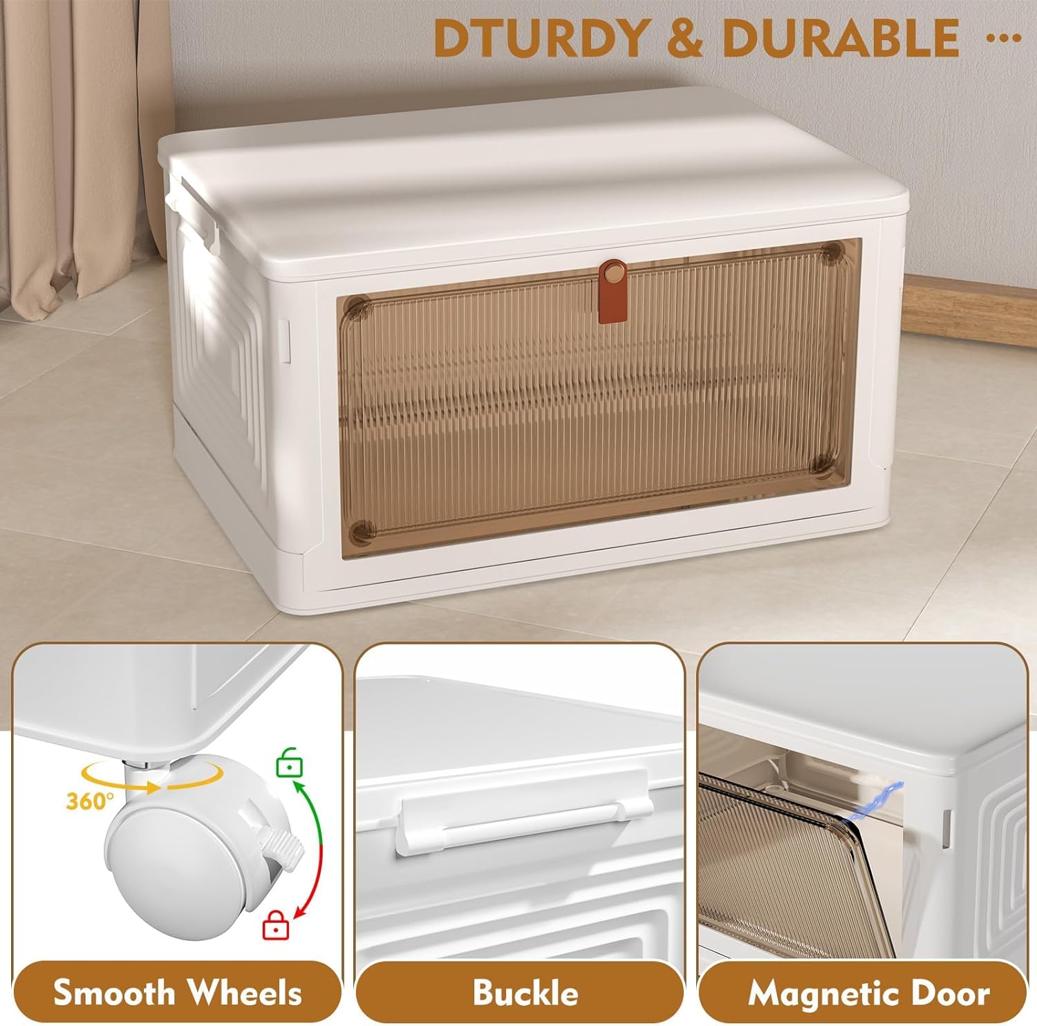 4 Tier Plastic Storage Bins with Lid 23QT, Stackable Storage Containers with Wheels, Folding Storage Boxes, Collapsible Storage Bins, Closet Organizers and Storage for Living Room,Office,Dorm