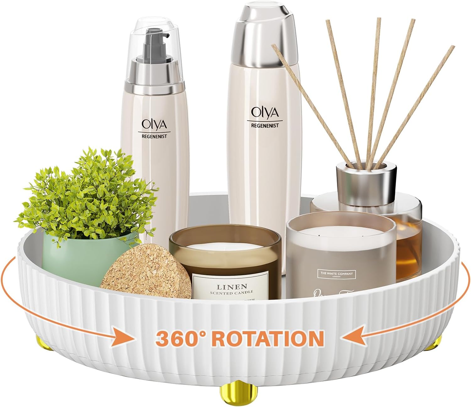 Bathroom Organizers and Storage,Rotating Makeup Organizer Tray for Perfume,Skincare,Cosmetics and Bathroom Storage,Lazy Susan Organizer,White