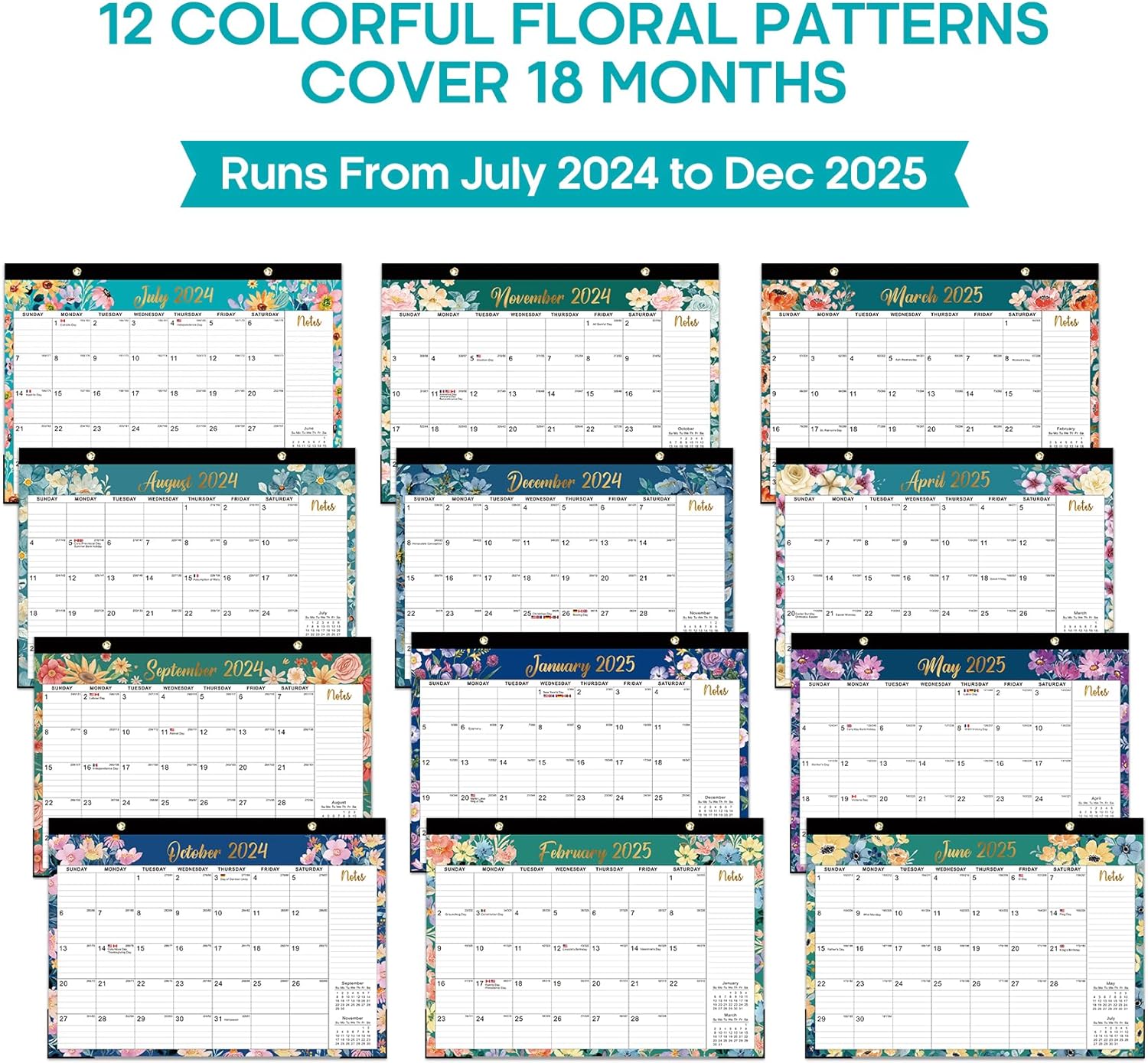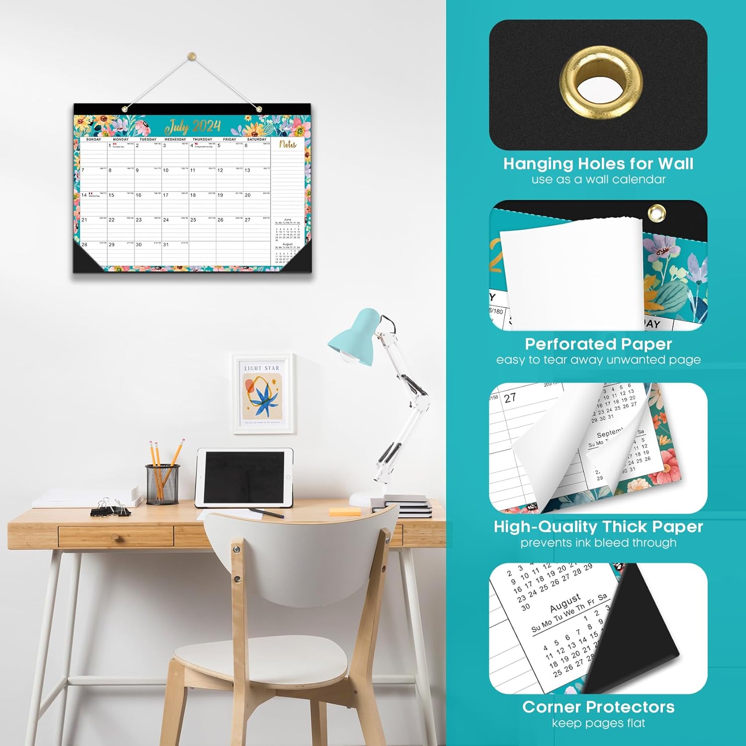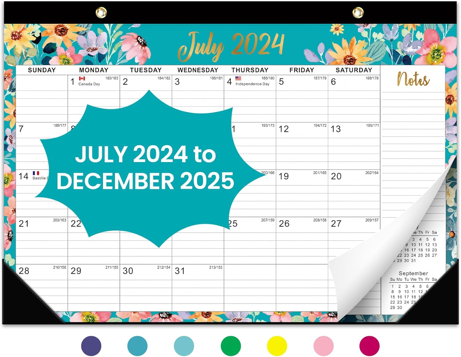 Desk Calendar 2024-2025,18 Months July 2024 to Dec 2025 – Large 17″ x 12″ Desktop/Wall Monthly Calendar for Home or Office – Floral