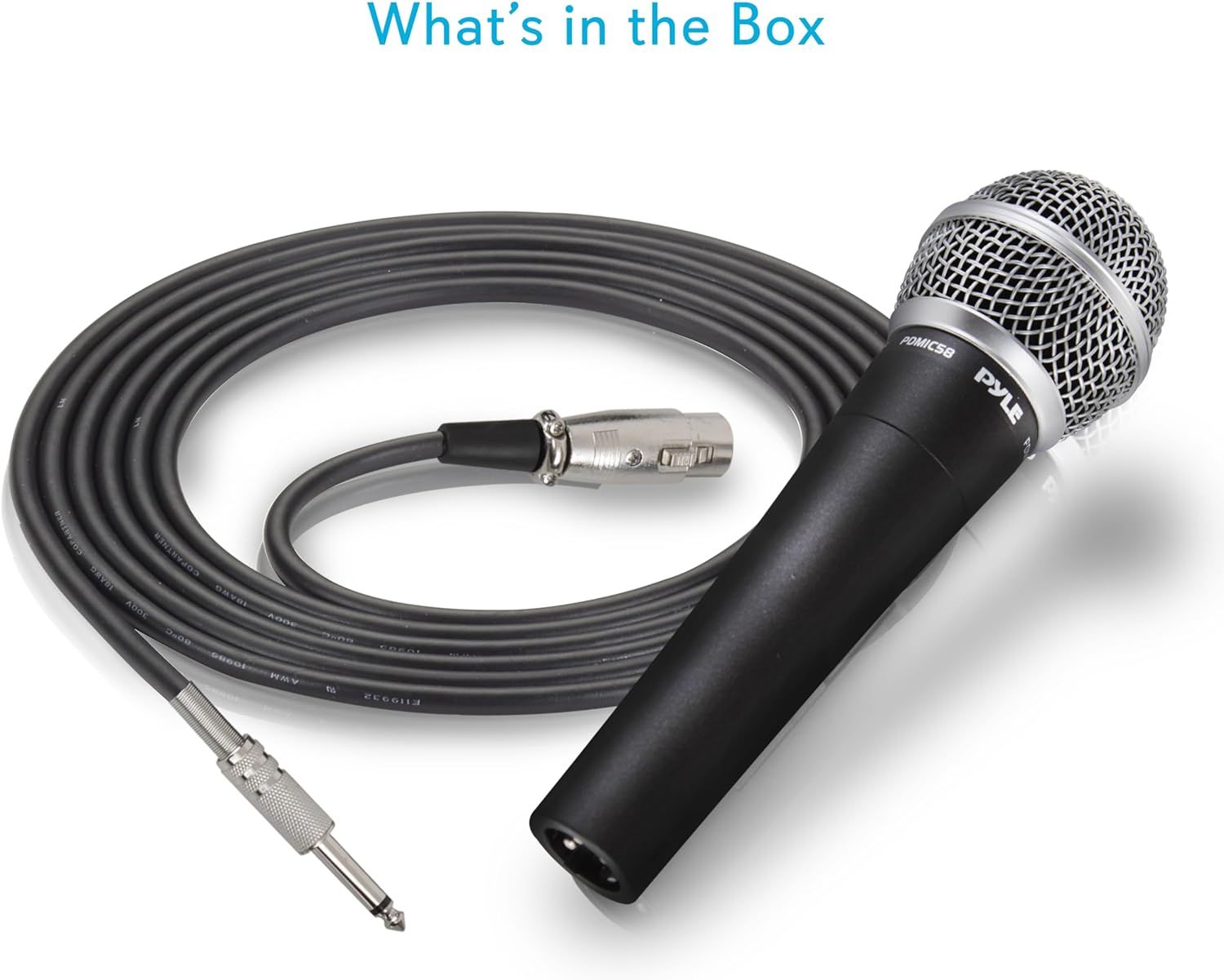 Pyle Handheld Microphone Dynamic Moving Coil Cardioid Unidirectional Includes 15ft XLR Audio Cable to 1/4” Audio Connection (PDMIC58)